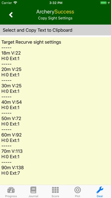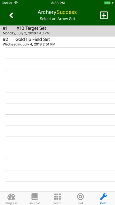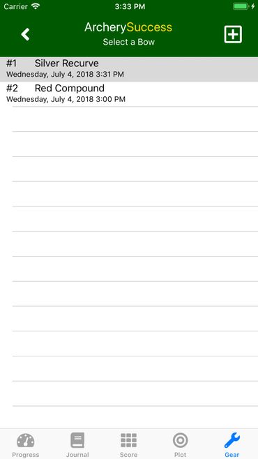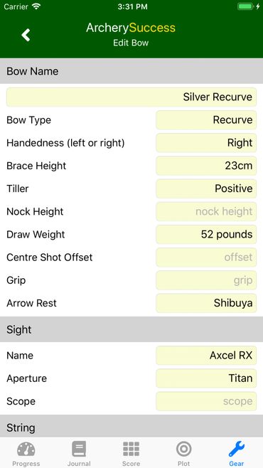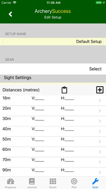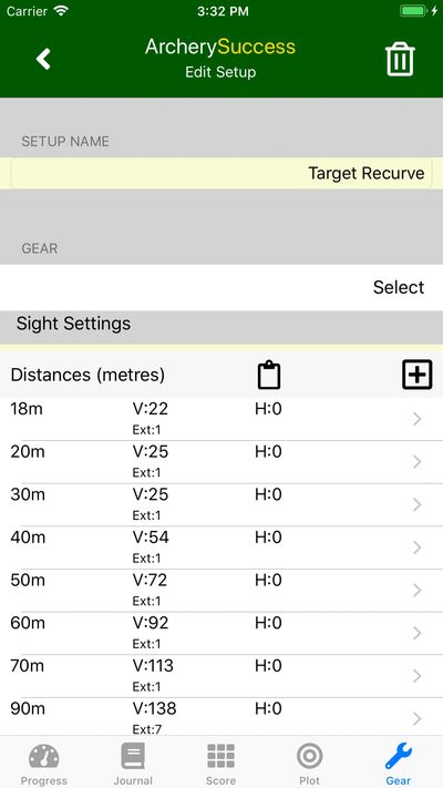 A list of setups is displayed in the gear tab. A setup is the combination of a bow, arrows and corresponding sight settings. Each setup has a unique identifier and can be given a name.